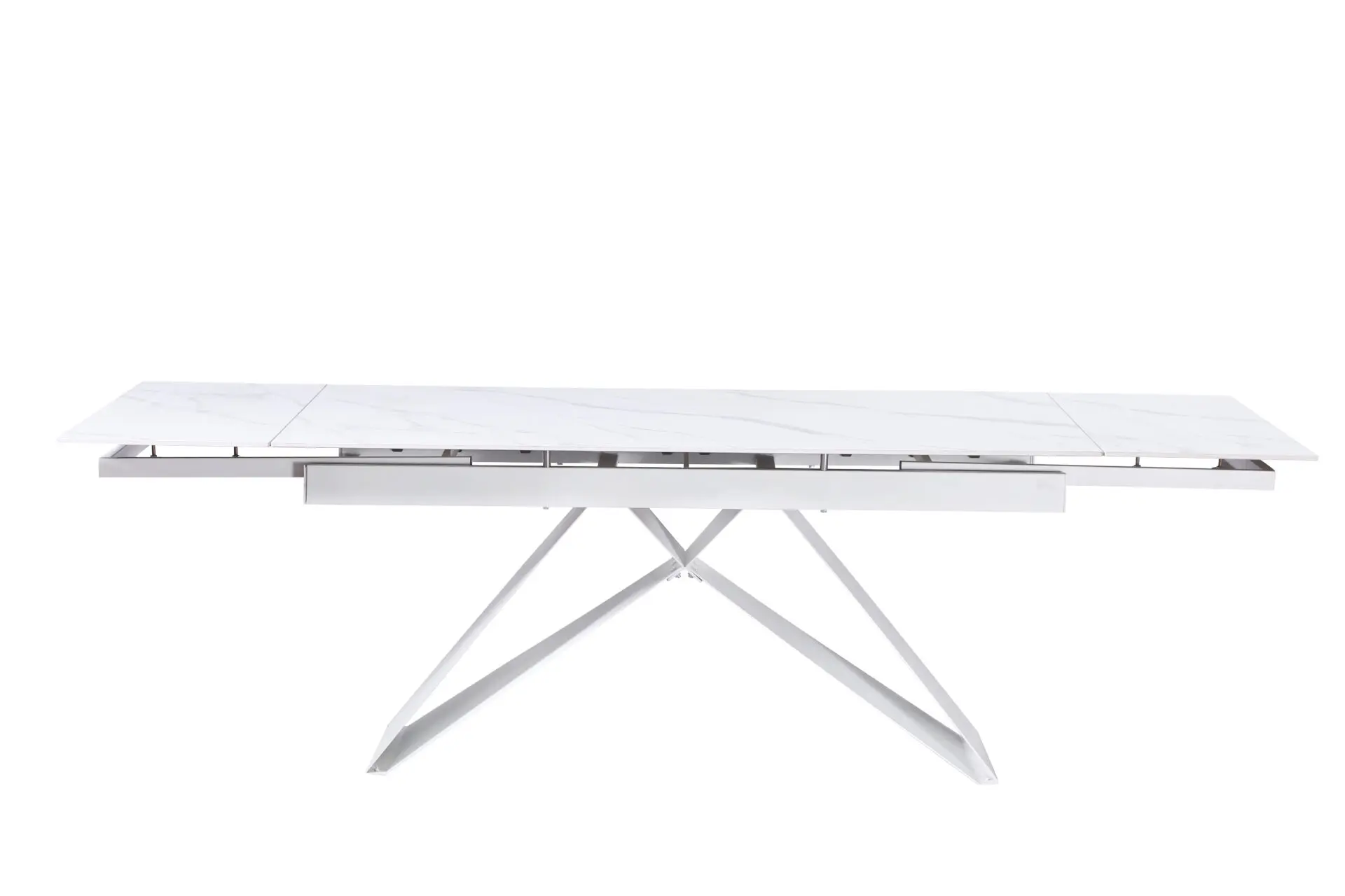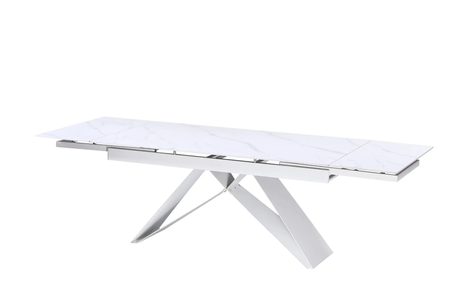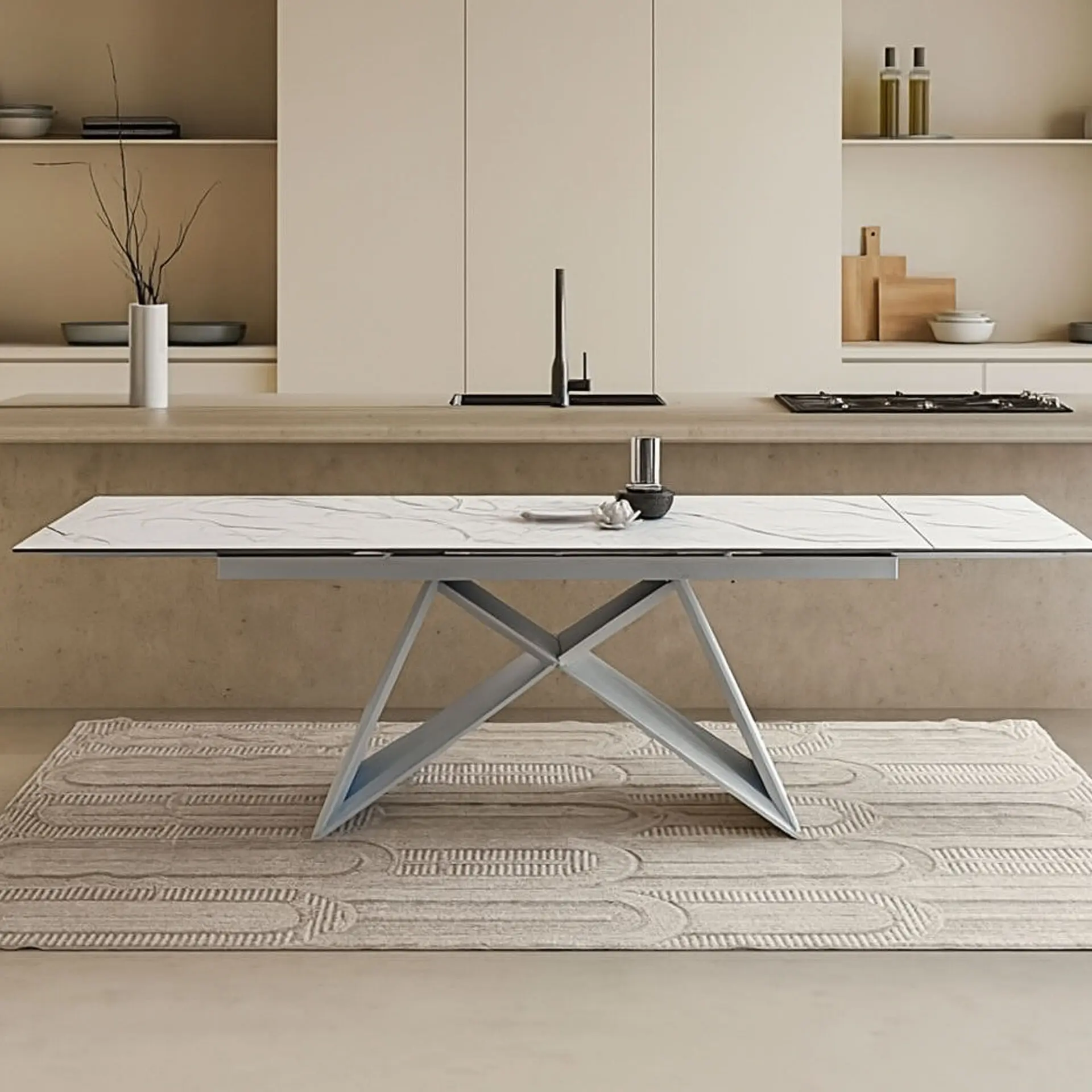 Il tavolo Iago New è un pezzo d’arredo dal design elegante e deciso, perfetto per ambienti moderni e raffinati. Il suo piano in vetro finitura Calacatta bianco richiama l’eleganza del marmo, donando un tocco esclusivo e sofisticato. Le gambe bianche in metallo garantiscono stabilità e resistenza, creando un contrasto armonioso con la superficie lucida del piano. Grazie al meccanismo allungabile, il tavolo passa facilmente da 160 cm a 240 cm di lunghezza, adattandosi a ogni esigenza, sia per cene intime che per occasioni con più ospiti. Con una profondità di 90 cm e un’altezza di 75 cm, è la scelta ideale per chi cerca uno stile contemporaneo senza rinunciare alla praticità. Un complemento d’arredo di carattere, perfetto per arricchire ogni spazio!
